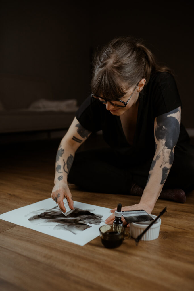 agnes hayden works at the intersection of painting and tattoo, where material, body, and human presence are inseparable. her practice did not begin with a fixed visual language, but with an attraction to situations that demand attention, responsibility, and contact. tattooing became central not as an aesthetic choice, but as a working condition: a place where permanence, conversation, and physical making meet.